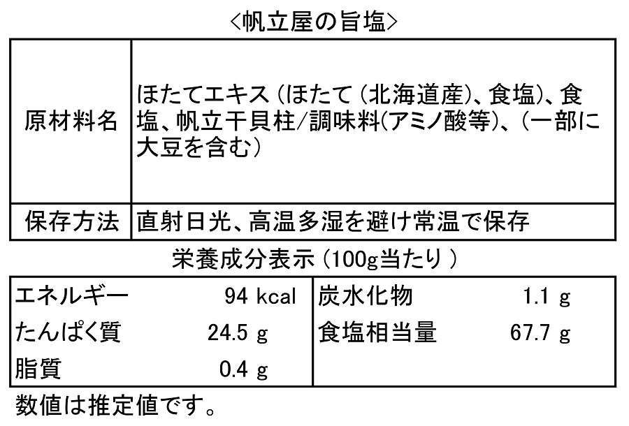 北海道産ほたての旨味をとことん煮詰めた帆立屋ならではの旨塩。