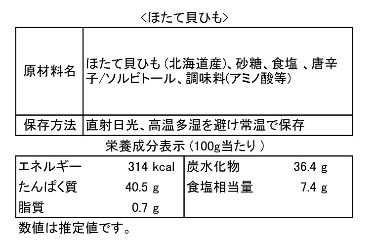 北海道産ほたて貝の'ひも'を、食感良く伸し上げました。