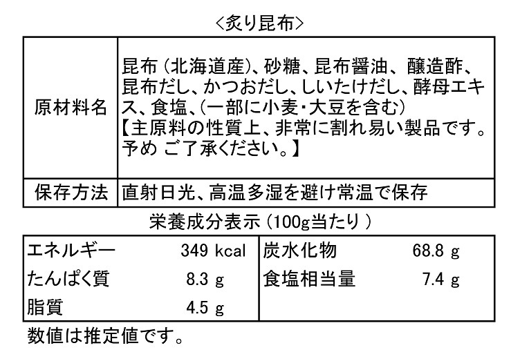昆布を和風味に仕上げ香ばしく炙り焼きしました。