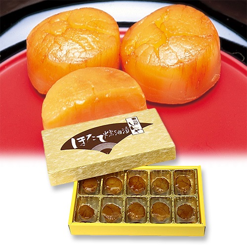 ほたて貝柱を自然塩で茹であげ、道産材のチップで軽く燻製し