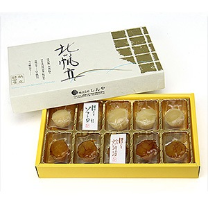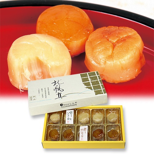 「ほたて燻油漬」「ソフトほたて貝柱 銀の殻舟」…異なる2つの味わいを詰め合せた"北の帆立"です。