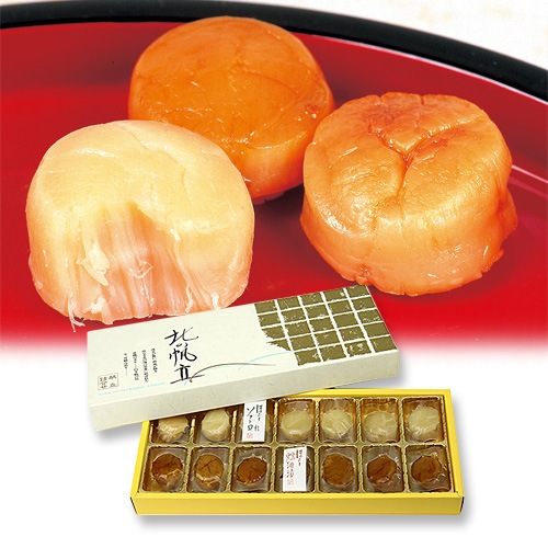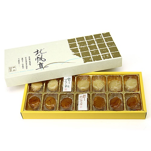 「ほたて燻油漬」「ソフトほたて貝柱 銀の殻舟」…異なる2つの味わいを詰め合せた"北の帆立"です。